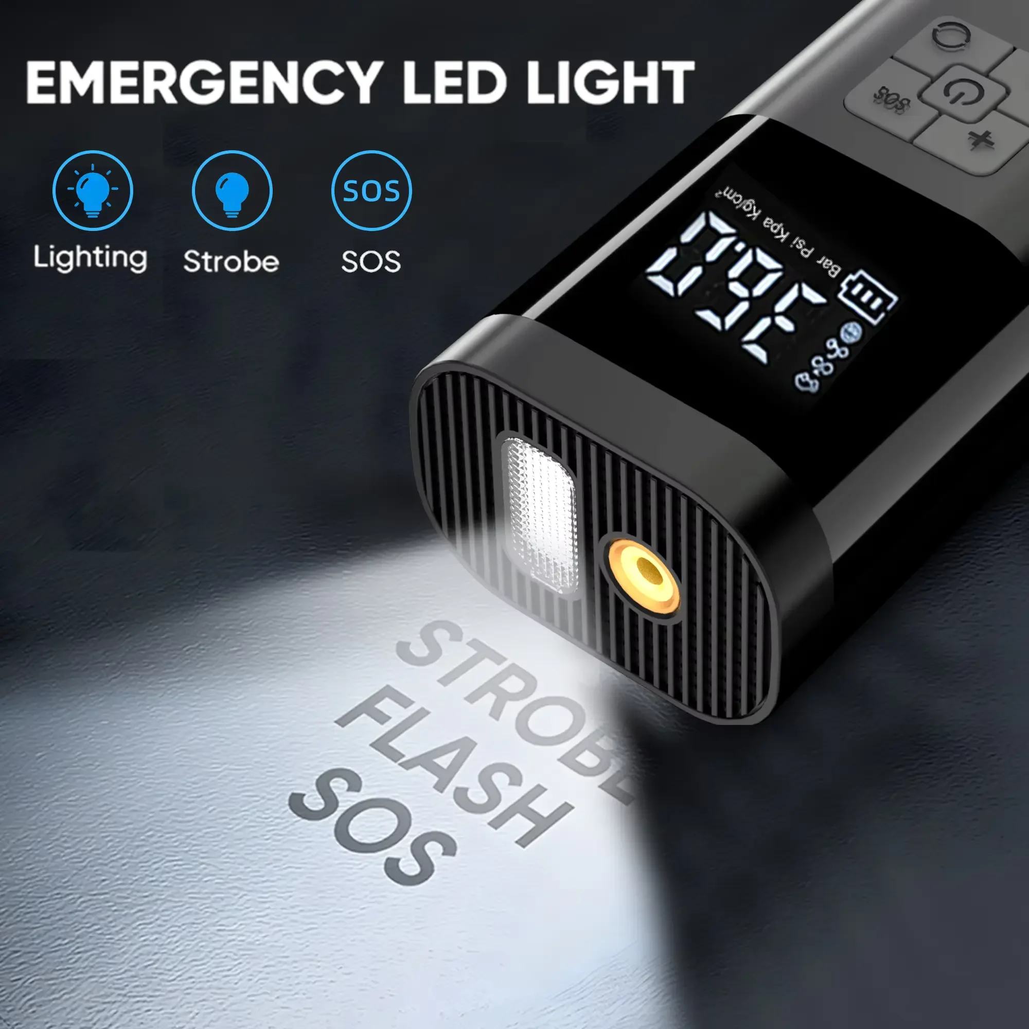 The built-in LED light with three modes adds extra safety. Use it for illumination in dark conditions or activate warning mode for roadside emergencies at night.